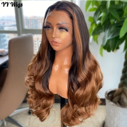 วิกผมลูกไม้สังเคราะห์ทนความร้อนสำหรับผู้หญิงผิวดำวิก13X4แบบมีลูกไม้สังเคราะห์สีน้ำตาลมีความยาว